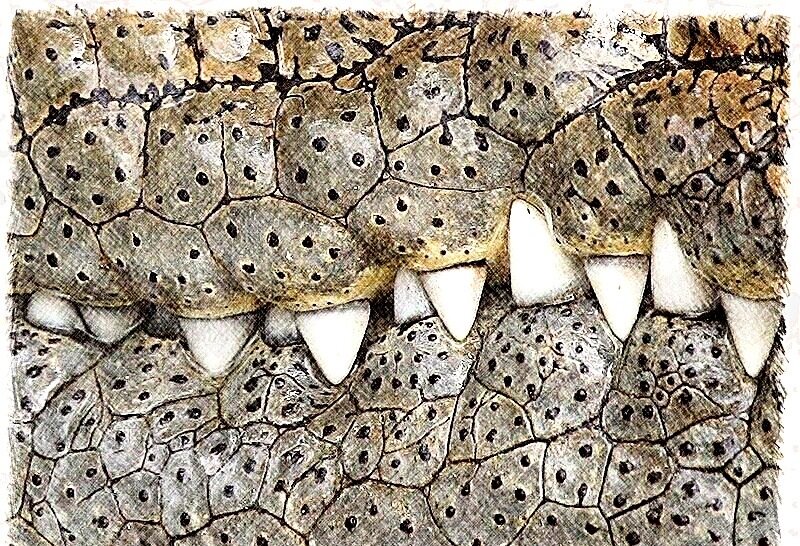 На четвертом месте находится крокодил. Его широкие пастушие зубы являются одним из самых опасных оружий при нападении на жертву. Длина каждого зуба может составлять до 6 см.