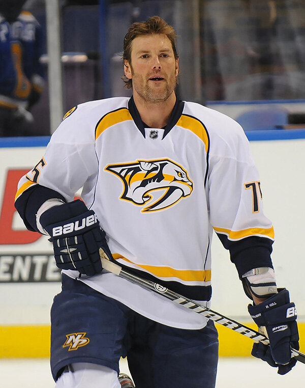 РА: С удовольствием приветствуем нашего сегодняшнего гостя, который пришел к нам уже в третий раз. Он провел в НХЛ 16 сезонов, сыграл свыше 1200 матчей с учетом плей-офф и, конечно же, выиграл Кубок Стэнли. Затем этот защитник устроился на телевидение и отработал вот уже шесть сезонов в качестве аналитика в Нэшвилле. Огромное спасибо, что вновь пришел на подкаст Spittin’ Chiclets. Приветствуем нашего дружбана Хэла Гилла!