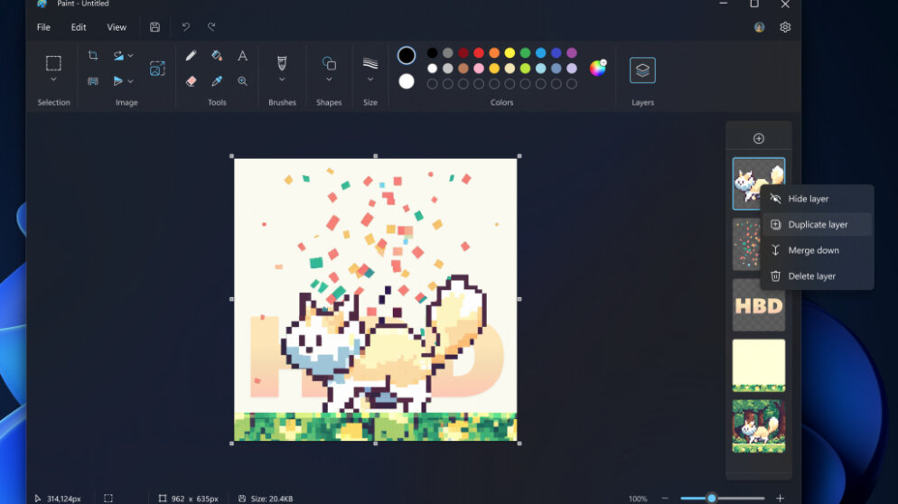 MS Paint когда-то был полезен только тем, чтобы скоротать время, когда у вас не работал интернет, но благодаря множеству бесплатных обновлений он превратился из "суперпростой рисовалки" прошлых десятилетий в удивительно полезный редактор растровой графики. Microsoft делает его еще более продвинутым, добавляя возможность работы со слоями и прозрачностью, которая уже доступна некоторым участникам программы Windows Insider. В понедельник разработчики Microsoft опубликовали сообщение в своем блоге, в котором говорится, что в обновленном Paint появится возможность "добавлять, удалять и управлять слоями на холсте для создания более насыщенных и сложных цифровых произведений". Теперь пользователи смогут разделять элементы изображения на слои, а не редактировать их все на одном холсте. В конечном итоге это позволит пользователям просматривать, скрывать или точно настраивать отдельные компоненты изображения, не рискуя испортить всю композицию. Для наглядности, на верхнем изображении Microsoft р
