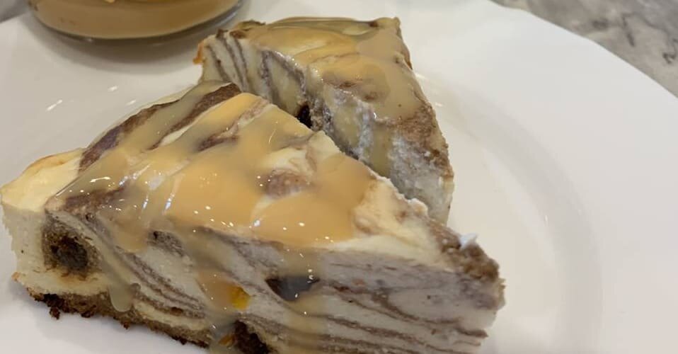 Очень нежная, по текстуре похожа на чизкейк. Ингредиенты (форма 16 см): Творог в брикете 5% - 400 г Мягкий творог 5% - 125 г Яйца - 2 шт. Йогурт натуральный 2% - 20 г Сироп Mr. Djemius шоколад - 15 г Кэроб - 5 г Тапиоковый крахмал - 20 г Чернослив - 20 г Курага - 10 г Подсластитель (сироп топинамбура - 5 г) Для подачи: Можно зять любимый сироп или сгущенку Приготовление: 1) Разогреваем духовку до 170 г, замачиваем сухофрукты. 2) Смешиваем творог, йогурт, яйца, крахмал, подсластитель и перебиваем блендером до однородности. 3) Половину смеси (~200 г) откладываем в отдельную миску и добавляем шоколадный сироп Mr. Djemius и кэроб. 4) Сухофрукты мелко рубим и всыпаем в любую часть смеси. 5) В форму для выпечки выкладываем по очереди шоколадную и белую смеси по 2 ст.л. 6) Выпекаем при 170 гр. 30-35 минут. 7) Готовую запеканку остужаем в форме до комнатной температуры и наслаждаемся! Приятного аппетита ✨