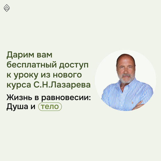 Завтра начнутся занятия на уникальном 7-недельном курсе С.Н. Лазарева «Жизнь в равновесии. Душа и тело». Вам интересно узнать, как построено обучение? Что будет происходить на уроках? Как будет подаваться материал? Как удастся совместить проработку темы питания на двух уровнях? Конечно, мы могли бы подробно описать вам всю программу, но мы решили пойти другим путем и создать максимальный «эффект присутствия», чтобы вы могли погрузиться в курс самым естественным образом. 😮 Приглашаем вас на живой, открытый урок из авторского курса «Жизнь в равновесии», где вы узнаете, как: ✅ определить влияние питания на уровень вашей энергии ✅ выявить причины пищевых зависимостей на уровне подсознания ✅ сделать первый шаг на пути избавления от этих зависимостей 🤿 Готовы к погружению? 👉Переходите по ссылке в раздел «УРОК», чтобы первыми получить к открытому уроку Сергея Николаевича и Дарьи Будыко. Желаем успехов в обучении и развитии! С Любовью и Уважением, Команда Лазарева