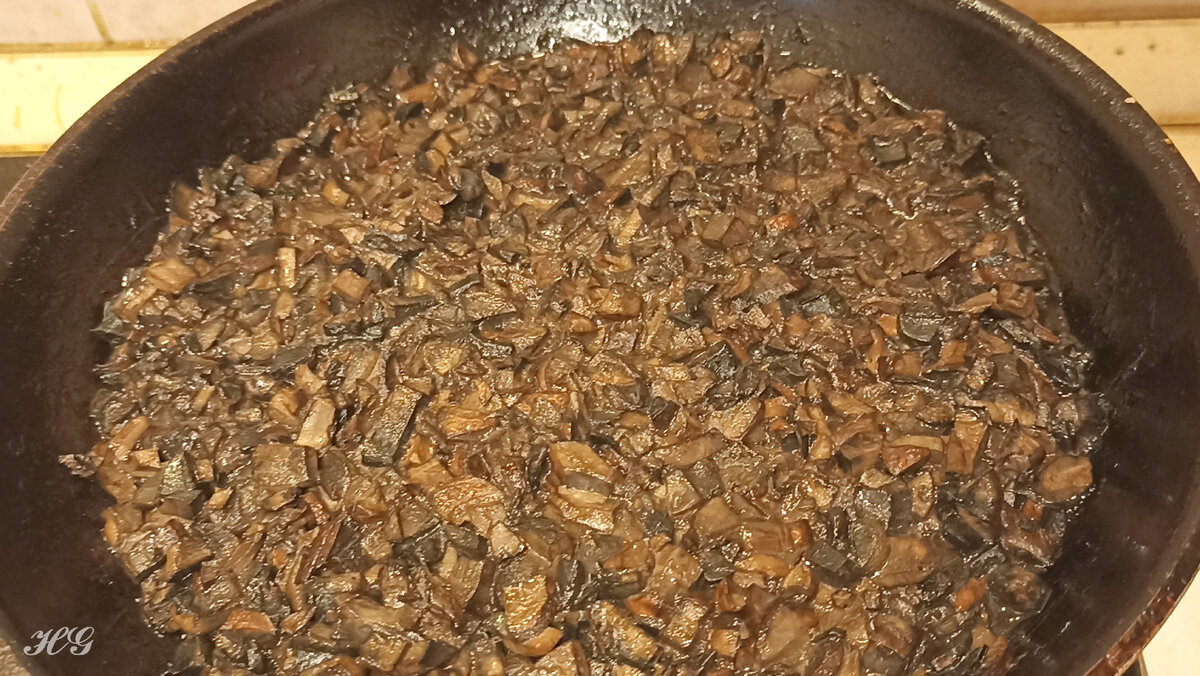 Вкусно, сытно, красиво! Хоть на праздник, хоть на каждый день. Грибов в этом году было много, в вот свободного времени мало. Хотела рецепт выложить в сезон тихой охоты, но не успела. У меня лесные грибы со своей дачи, но в этом рецепте их вполне можно заменить шампиньонами, так что к любому празднику подойдет. Грибы помыть, порезать помельче и жарить на сковороде до выкипания всей жидкости. Пока грибы обжариваются натереть сыр на терке и подготовить мясо. У меня свиная шея, можно взять карбонат. Мясо нарезать ломтиками толщиной 1-1,5 см и отбить. Я это делаю в полиэтиленовом пакете, он конечно все равно рвется, но все же кругом брызги не летят, получается намного чище. Выложить грибы и сыр на мясо. Здесь у меня всегда возникает небольшая проблема, я пытаюсь положить слишком много начинки и рулетики отказываются заворачиваться. Заколоть зубочистками. Выложить на хорошо прогретую сковороду с высоким бортом. Обжарить с двух сторон до красивого румянца. Налить в сковороду кипящую воду т