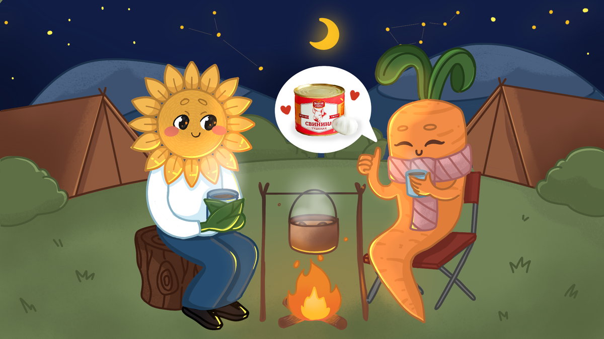 У клуба «Качество в подарок» есть традиция каждый год в конце августа отправляться в поход. С собой, как и положено, компания берет палатку, спальники, спички и целый рюкзак еды. Некоторые из членов клуба решили разнообразить походное меню и взяли с собой весьма необычные продукты. Спаржа в банках Оказалось, это два разных продукта: Маринованная спаржа многих приятно удивила. Она оказалась мягкой, но хрустящей, а по вкусу напоминала маринованные огурцы. Подсолнух просветил друзей, что в спарже много клетчатки, поэтому она полезна для ЖКТ. Зефирка достала из рюкзака пюре из шпината и щавеля. Сначала многие отнеслись к продукту весьма настороженно: зеленая масса выглядела не очень аппетитно. Она молча развела костер, повесила над ним котелок и принялась варить зеленые щи. Помимо пюре, Зефирка добавила в котелок картошку, капусту, морковку и лук. Суп получился ароматным с легкой кислинкой. Обеденные консервы Сеньор Помидор знал, что компания проголодается, пока они найдут подходящую пол