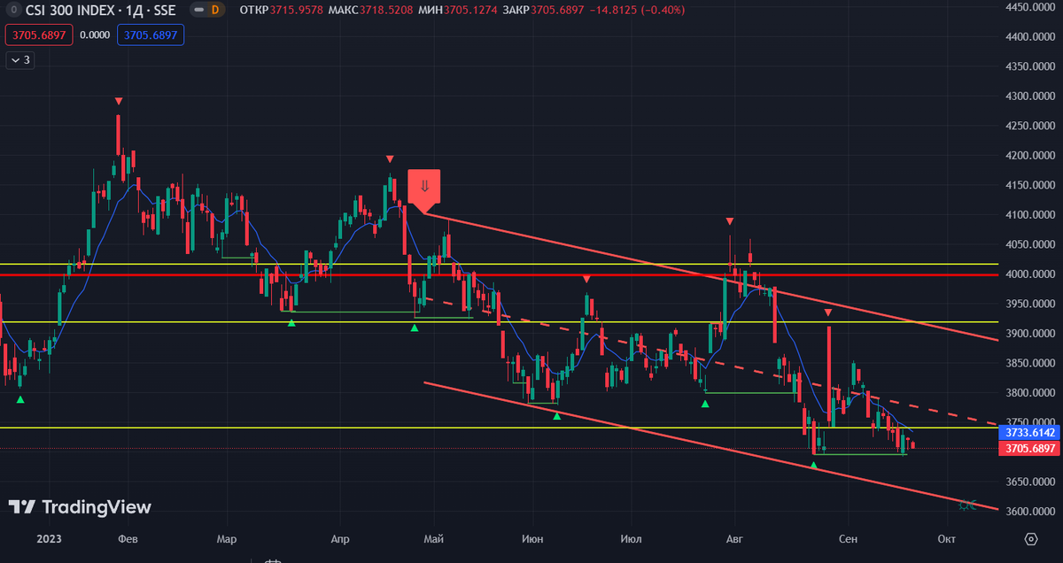 Близится, пора выплат по китайским акциям и в этом году ожидается, что они будут рекордные. С чем связаны рекордные дивиденды? Как известно в этом году, китайский рынок чувствует себя не очень. Его периодически штормит, а значит инвесторы продают акции и переводят их в более стабильные компании. Для примера можно привезти индекс CSI 300 (его график вы видите на скриншоте). Как видно по сравнению с началом 2023 года он сократился практически на 12%. В связи с этим китайский рынок хочет вернуть инвесторов с помощью крупных дивидендов. Согласно приблизительным подсчетам китайские компании выплатят 1,5 трлн юаней или $206 млрд, превысив сумму 1,27 трлн юаней, которую выплатили в прошлом году. Для меня как человека, который в последнее время немного набирал акции китайских компаний, большие дивиденды являются приятным бонусом. Т.к снижение курса акций является отличным моментом для долгосрока. Кто выплатил рекордные дивиденды на данный момент? Вот такая хорошая новость для любителей китайск