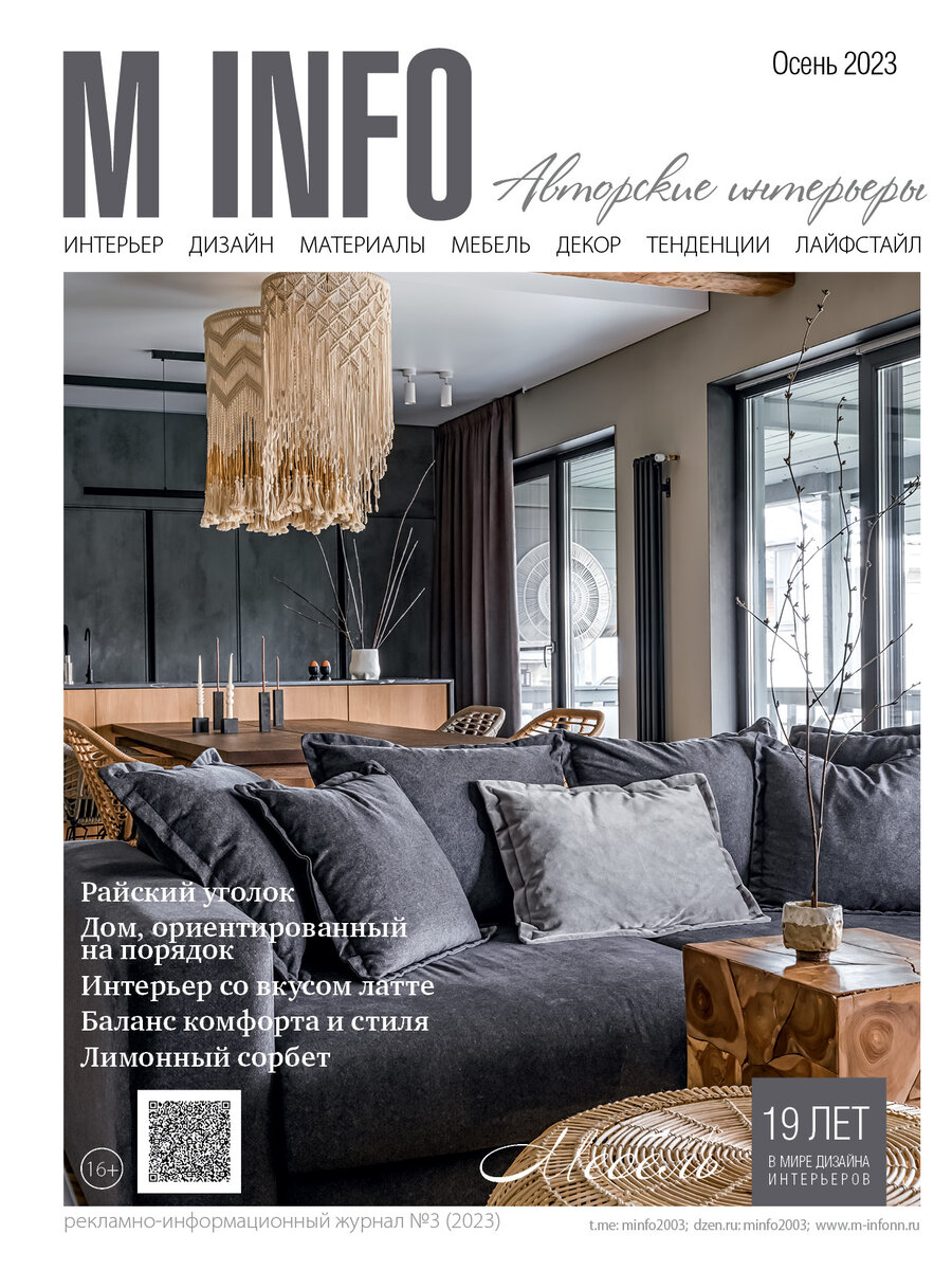 В этом номере 127 (2023 г.): Рубрика ТРЕНД 8 MADE IN RUSSIA: КОМПЛЕКТУЕМ ИНТЕРЬЕР РОССИЙСКОЙ МЕБЕЛЬЮ 10 ЭВОЛЮЦИЯ МДФ Рубрика PUBLIC INTERIOR 12 СИЛА ПРИРОДЫ В ИНТЕРЬЕРЕ 16 ПРАЗДНИК РОСКОШИ Рубрика ИДЕИ И ТЕНДЕНЦИИ 20 РАЙСКИЙ УГОЛОК 26 ДОМ, ОРИЕНТИРОВАННЫЙ НА ПОРЯДОК 34 ЛОМАЯ СТЕРЕОТИПЫ 40 ИНТЕРПРЕТАЦИЯ КОЛОНИАЛЬНОГО СТИЛЯ 44 ИНТЕРЬЕР СО ВКУСОМ ЛАТТЕ 48 БАЛАНС КОМФОРТА И СТИЛЯ 54 СОЛНЕЧНЫЙ ИНТЕРЬЕ 58 ИНТЕРЬЕР ВНЕ ВРЕМЕНИ 64 ЛИМОННЫЙ СОРБЕТ 70 ИНТЕРЬЕР С РУССКОЙ ДУШОЙ 76 КРАСОТА В ЧИСТОТЕ Рубрика СВЕТСКАЯ ХРОНИКА 82 ДЕНЬ ДИЗАЙНА 83 КЛУБ АРХИТЕКТОРОВ И ДИЗАЙНЕРОВ «МОДНЫЙ ДОМ» 84 ЮБИЛЕЙ ДОМА АРХИТЕКТОРА 85 ДИЗАЙН-КЛУБ НИЖНИЙ НОВГОРОД 86 ДЕНЬ РОЖДЕНИЯ КОТТЕДЖНОГО ПОСЕЛКА «РОМАШКОВО» На обложке фрагмент реализованного авторского интерьера: Архитектор, дизайнер Алла Кроль Фотограф: Михаил Чекалов Стиль: Варвара Калицкая Дата выхода: 19.09.2023 ИНТЕРНЕТ-ВЕРСИЮ ЖУРНАЛА M INFO СМОТРИТЕ НА ОФИЦИАЛЬНОМ САЙТЕ http://m-infonn.ru/magazine/3-2023/ Подпишитесь, чтоб