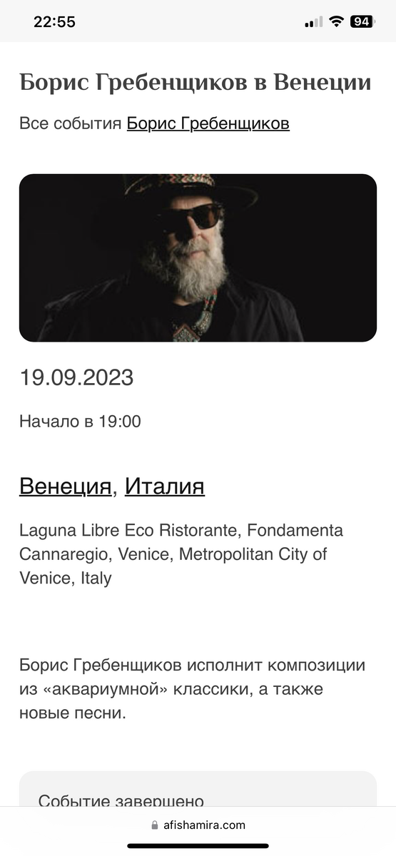 Пишет киновед Ирина Павлова: «Кажется, весь российский бомонд отметился на вчерашнем концерте [иноагента] БГ в Венеции (я к бомонду не принадлежу, поэтому просто шлялась по Венеции, упиваясь ею - да и вообще: я тут оказалась "проездом"). Но я вот к чему. Все горько рыдающие в бесконечной тоске и депрессии по "утраченному раю" (хотя последние лет 10 никак, кроме как адом, они этот "утраченный рай" не называли), по-прежнему могут в любую минуту сорваться и слетать в Венецию (едва ли не самый дорогой город мира - особливо в сезон!) на концерт. И еще пару дней остаться потусить - или не оставаться. Они, депрессующие, по-прежнему в шоколаде, у них достаточно средств, у них - открытые шенгены, и проблемы "не бомонда" как никогда их не интересовали, так и продолжают не интересовать. И жить они продолжают со вкусом и с удовольствием. Но публично страдают они в сто раз громче "не бомонда". Какое-то у них странное свойство - непрерывно и громко страдать...». Из комментов отмечу реплику своего