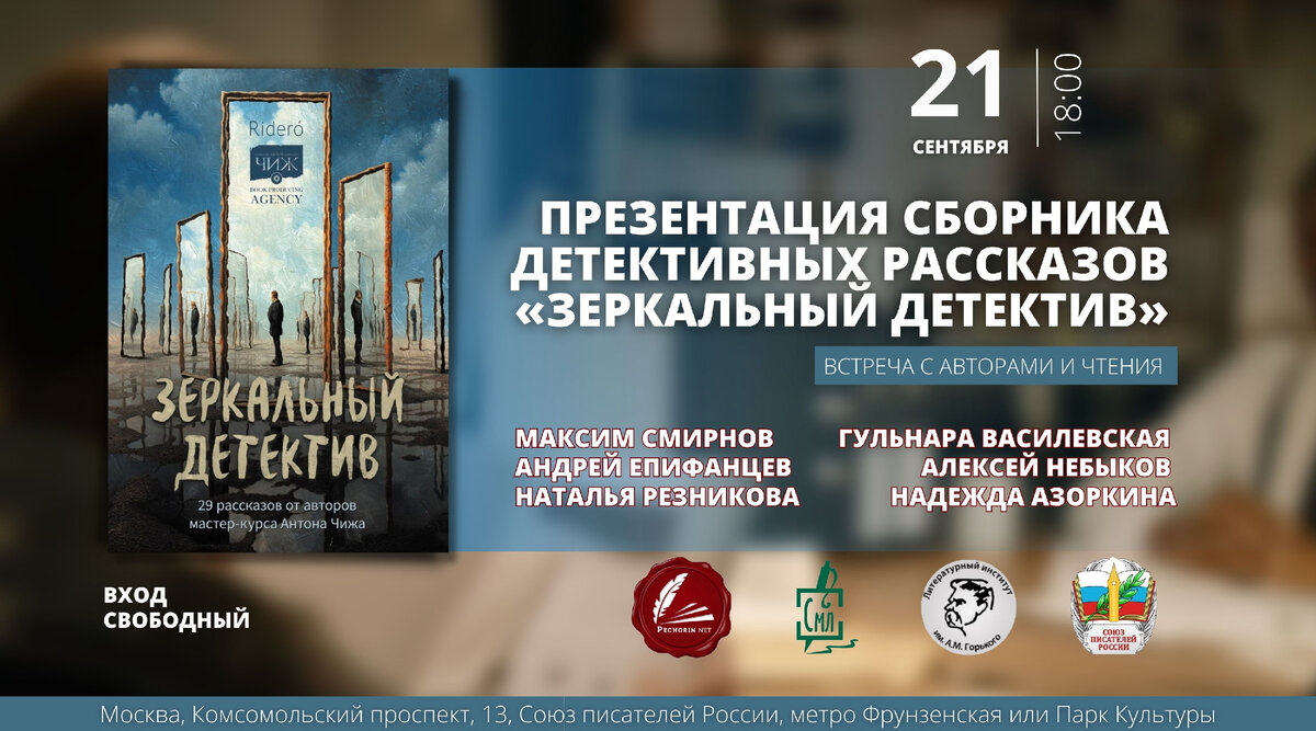 21 сентября в 18.00, Литературная гостиная Союза писателей России по адресу: город Москва, Комсомольский проспект, 13, метро Фрунзенская или Парк культуры. Вход свободный.