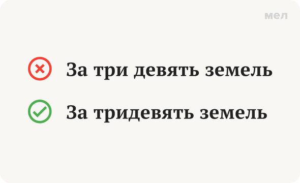 Почему же слово «тридевять» пишется слитно? Это ведь два разных числительных: «три» и «девять». Есть версия, что данный фразеологизм восходит ко времени, когда на Руси существовала девятеричная система исчисления, согласно которой «тридевять» — это не два разных числа и не число 39. Это три раза по девять, то есть 27 (шок!).