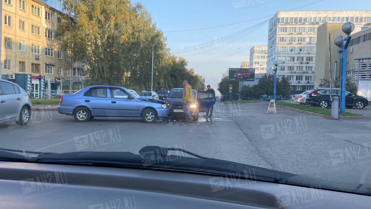 В Кемерове около ТРЦ столкнулись два автомобиля: очевидцы поделились кадрами с места аварии