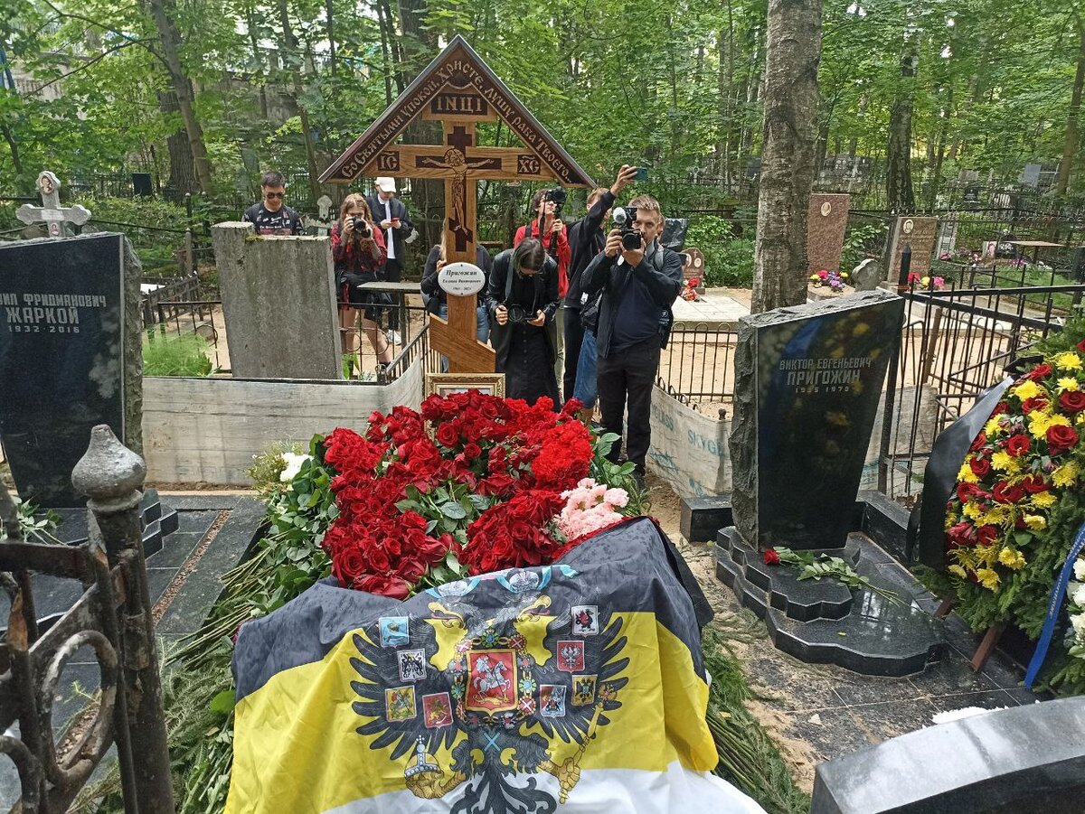 Местные СМИ пишут, что теперь на месте захоронения главы ЧВК "Вагнер" стоит круглосуточная охрана. Работники кладбища рассказали, что на третий день после похорон кто-то положил у могилы кувалду и настоящую раритетную скрипку. Однако уже на следующий день музыкальный инструмент пропал. Сейчас около могилы Пригожина установили видеокамеру и будку, в которой круглосуточно находится кто-то из охранников.