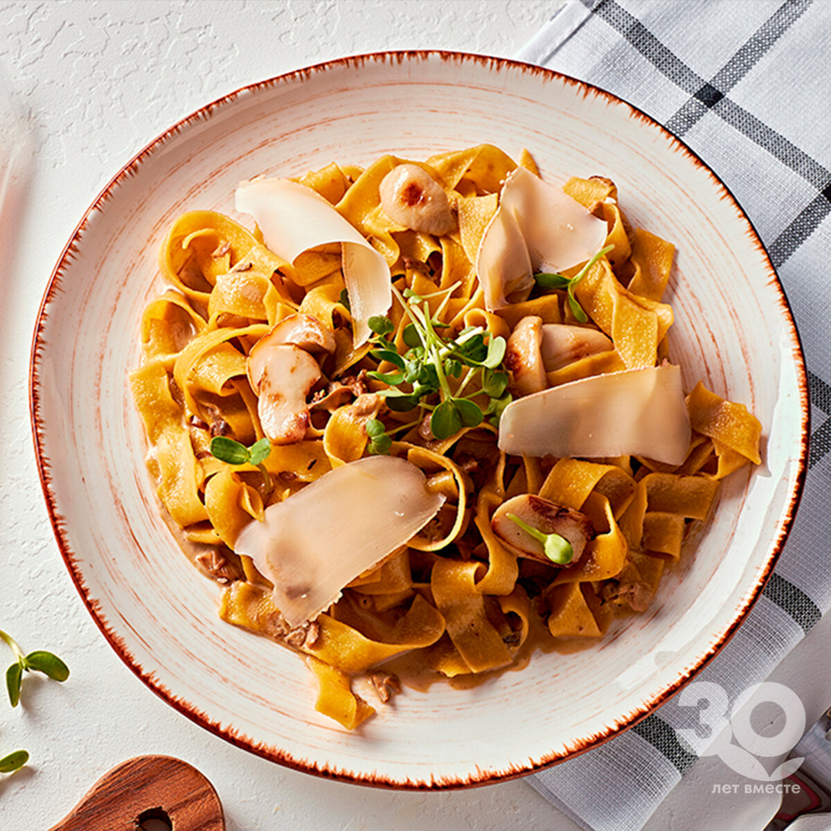 Папарделле с белыми грибами в сливочном соусе и пармезаном