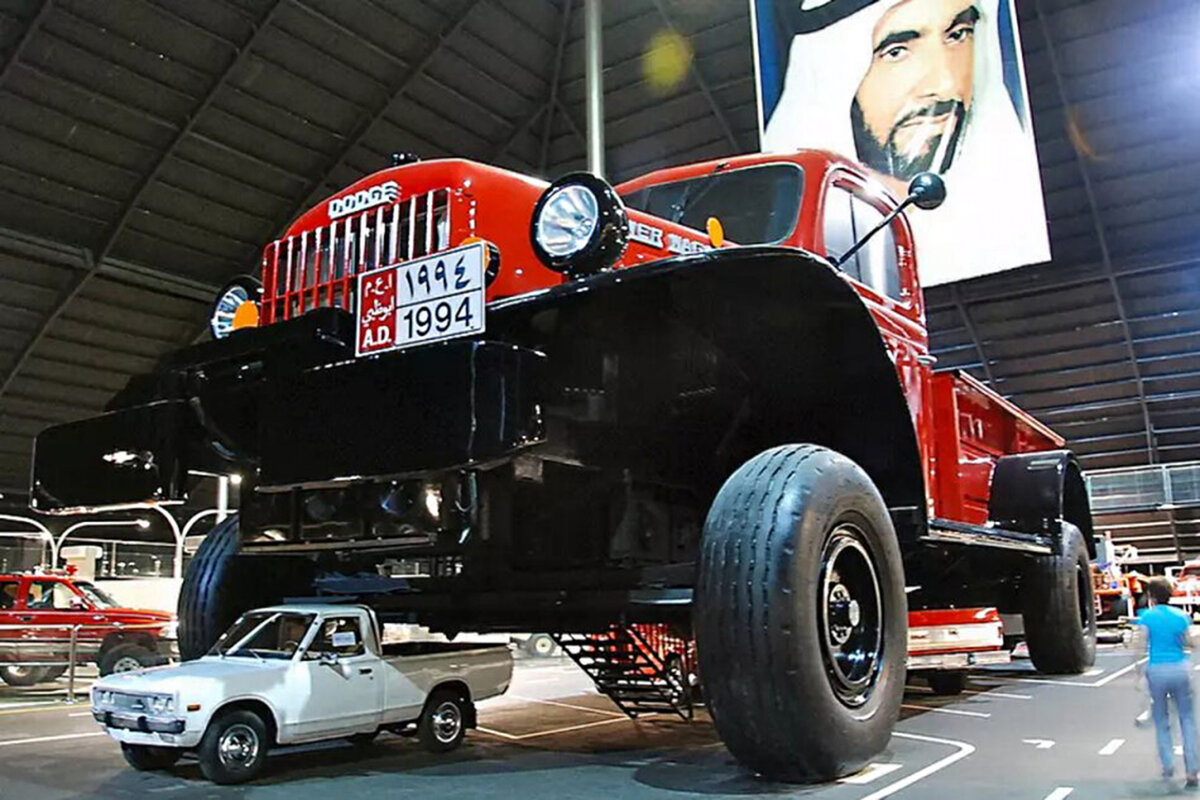 На днях рунет вспомнил про одного из правителей Объединённых Арабских Эмиратов. И дело тут не в политике. Интерес снова вызвала огромная автоколлекция шейха Хамада бин Хамдана Аль Нахайяна, о некоторых экспонатах которой мы тебе сейчас и расскажем. Dodge Power Wagon Сразу отметим, что шейх Хамад просто в восторге от реально огромных машин. И этот автомобиль — отличный пример, ведь он больше оригинала в 8 раз! И в нём действительно можно жить, ведь он отапливается и имеет несколько комнат. Willys MB Этот зверь немного поменьше, но чтобы попасть внутрь, всё равно придётся подняться на несколько этажей. Спроектировал его сам обладатель. Масса махины составила 4 тонны. И это ещё не предел. Dhabiyan А вот и чемпион в мегатяжёлом весе. Его рабочая масса составляет 25 тонн. Фишка авто в количестве колёс — их тут целых 10. Два из них, судя по всему, запасные. Однако, учитывая их размеры, путешествовать можно даже на одном. Ford GPA Не обошлось в коллекции и без машины-амфибии. Эта лодка на кол