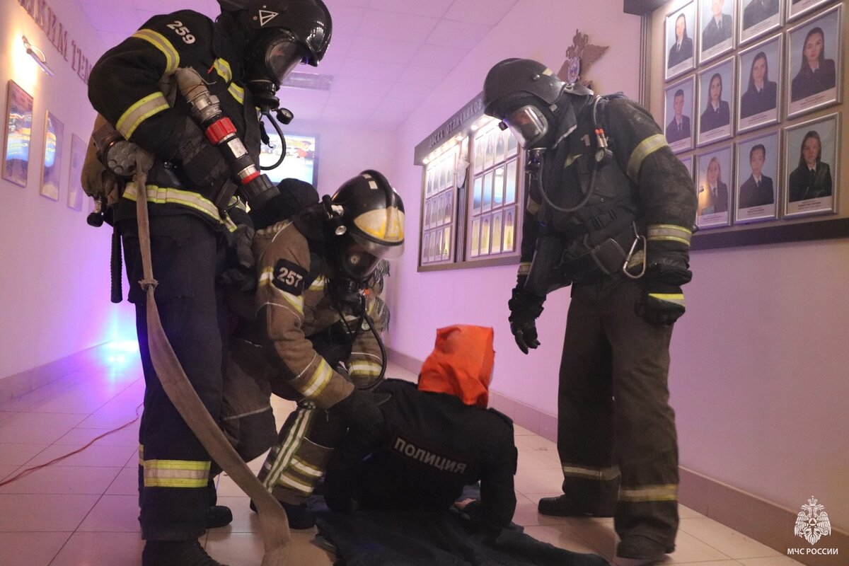 По замыслу учения, в результате аварийного режима работы электрооборудования на втором этаже одного из корпусов института в помещении произошел пожар, который распространился по надземному переходу на соседний корпус. В коридорах корпусов образовалось плотное задымление, создалась угроза жизни и здоровью обучающихся и преподавателей, находящихся внутри. Преподаватели, за