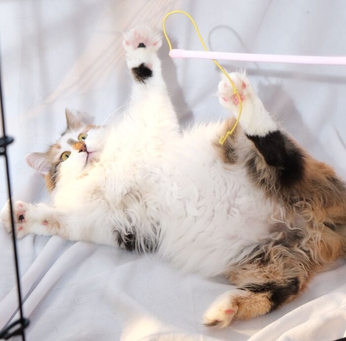 Да, Мила играет исключительно вот в таких непотребных позах - пузом кверху, лапы врозь🤣 Нет, она умеет и как прЫнцесска сидеть, лапки хвостиком укрыв, и с мур-мур в ладонь лбом ввинчивается умеючи. Но как только видит игрушку и того, кто готов поиграть - все, даёшь валяния!) И фото всего смеха передать просто не в состоянии😅 Миле примерно 10-11 месяцев. Здорова, привита, стерилизована. Лоток знает идеально. Людей любого пола и возраста просто обожает) Ещё ничья. Пока. Ждёт Своих)
