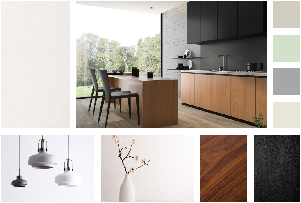 Чистый и упрощенный, этот стиль дизайна характеризуется сдержанным использованием декоративных элементов с предпочтением практичных предметов. Пространство распределено с помощью расстановки мебели вместо встроенных стен, а естественное освещение подчеркивает особую спокойную красоту этого стиля. Типичные цвета Типичная современная цв
