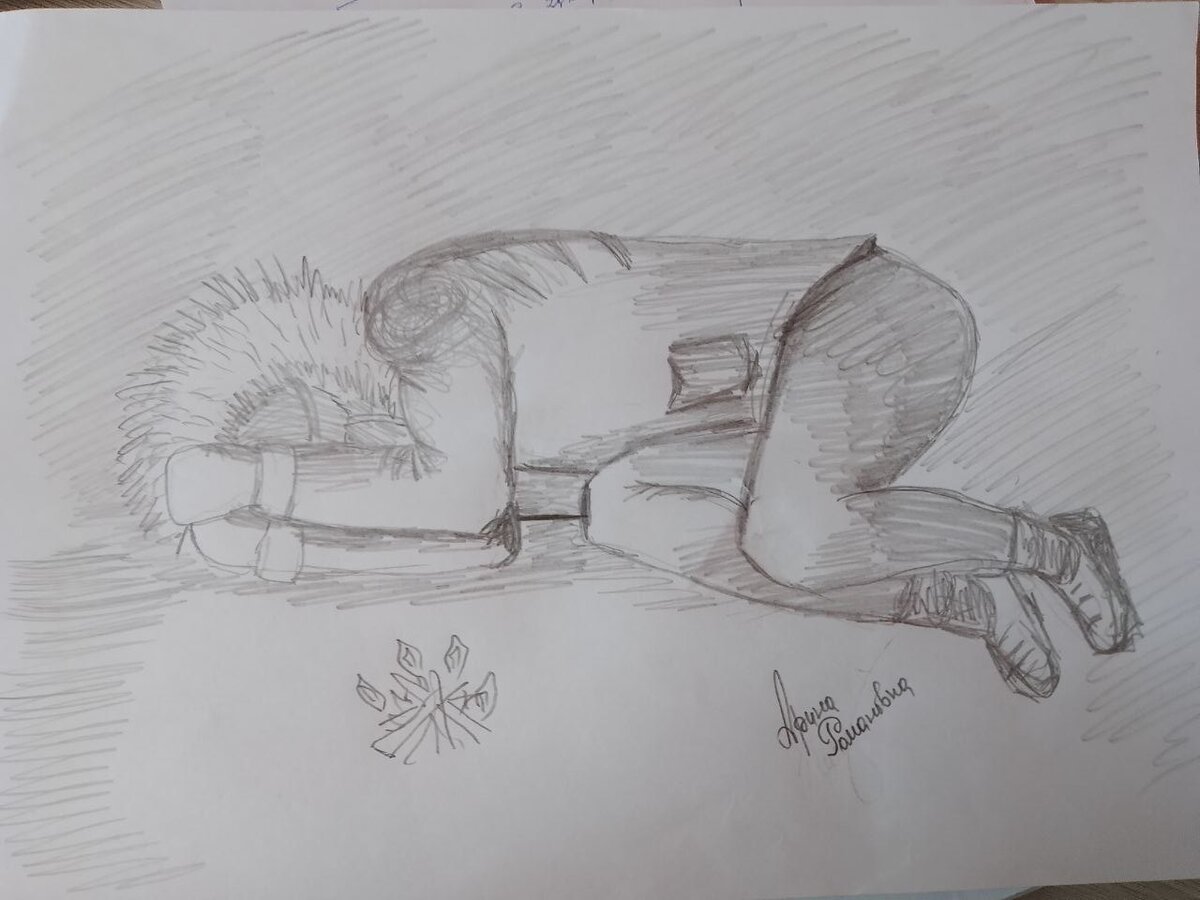 О чем оно- одиночество? Для чего оно рвет в груди. От чего тоска? Что изображает рисунок? Посмотрите, подумайте. Снег. Холод. Серость. Человек лежит в позе эмбриона. Зимняя одежда на нём. Костер, маленький. Задний фон: это небо? Человек на вершине горы? Это стена? Из чего? Снега? Камня? Значит человек в яме? Он провалился? Это человек как синоним одиночества. Остановимся. Что такое одиночество? Когда никого нет? Всегда или только сейчас? Человек лежит взрослый. Он сам в эту точку пришел. Что привело? Разные обстоятельства жизни. Сам. Был выбор-был. Есть выбор?-есть. Пока его не видно. Человек уткнулся в себя. Да, болит и страшно одному, работают инстинкты, которым надо найти свой вид, работают психологические защиты, которые нужны в стае. А то свои же не примут. Работает самоуничтожение-потому что "Я" не как стая. Работает в этот момент много чего. Важно приглушать. Взять смелость и увидеть себя. Дать себе руку. Поверить себе. Не дать потухнуть маленькому огоньку. Иначе замерзнешь