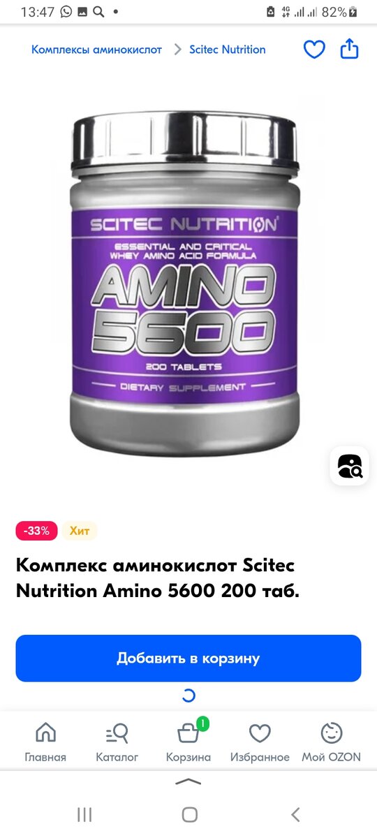 Добрый день, дорогие друзья. Представляю Вашему вниманию комплекс аминокислотный ( 18 аминокислот). производства Венгрия - Scitec nutrition Цена от 1300 руб. до 1500 руб.на ozon и yandex ( 200 таблеток). Многие спросят- для чего он нужен??? Я употребляю эти аминокислоты в течении 6 месяцев. Жизнь моя кардинально изменилась в лучшую сторону. Организм стал вырабатывать много энергии. Для эксперимента я прошел 70 км. за 2 дня , при этом не почувствовал никакой усталости. Для обеспечения организма суточной дозой аминокислот, нужно сьедать каждый день 300 г. мяса или кисломолочных продуктов. Налицо явная экономия денег. Так как суточная доза аминокислот- это 4 таблетки. Аминокислоты попадают в кровь через 30 минут после употребления таблеток. Кроме этого Вы также бережете зубы. Особенно полезно принимать таблетки на ночь , перед сном, для восстановления организма. Удачных покупок Вам и хорошего здоровья.