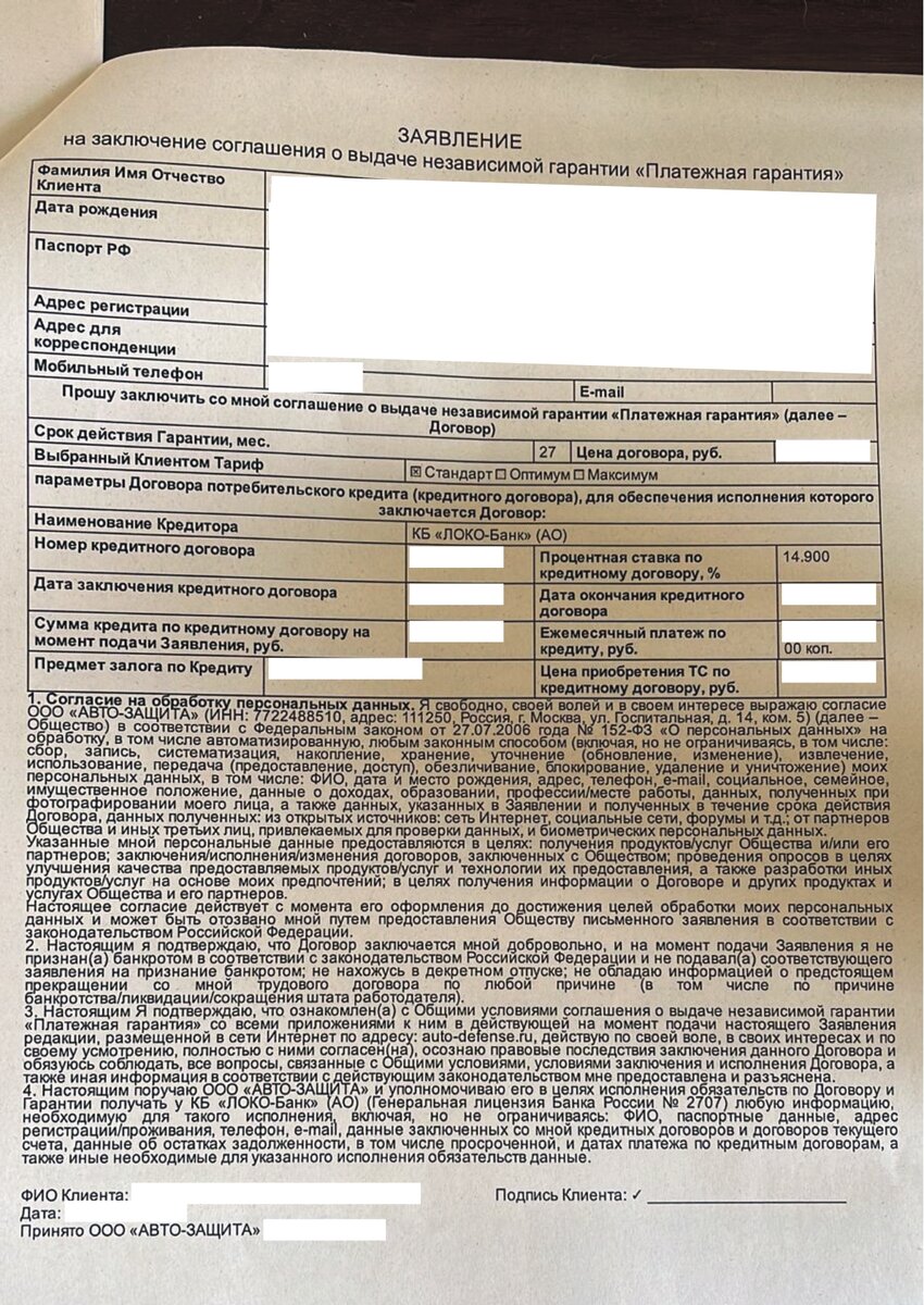 Эта пара популярных компаний, реализующих свои продукты через автосалоны. Независимая гарантия, Правовая защита автомобилиста, Финансовая защита автомобилиста, Помощь на дороге, Платежная гарантия – знакомые словосочетания тем, кому посчастливилось обнаружить среди документов, выданных автосалоном, договор с ООО «Авто-Защита» или ООО «Автозащита». ООО «Авто-Защита» и ООО «Автозащита» это две разные компании, схожих в названии, своих продуктах и способах их продажи потребителям. Для начала поговорим об ООО «Авто-Защита» Это наиболее распространенная компания, чьи договоры на услуги часто незаметно для самих себя «приобретают» потребители при покупке автомобиля в автокредит. ООО «Авто-Защита» реализует следующие договоры: 1. «Независимая гарантия» или «Платежная гарантия» - оформляется в виде подписания Заявления на заключение соглашения о выдаче независимой гарантии, в результате чего клиенту выдается Сертификат на эту самую гарантию. Ниже прилагаю фото этих Заявления и Сертификата, ко