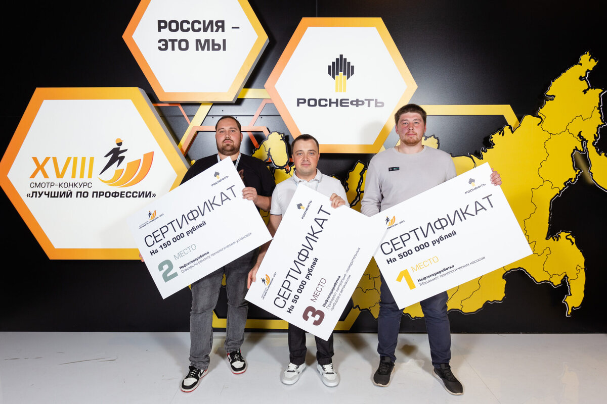 В Уфе подвели итоги XVIII Смотра-конкурса «Лучший по профессии» среди представителей основных рабочих профессий и инженерных специальностей дочерних обществ НК «Роснефть». За звание лучших в финале конкурса боролись более 600 участников, среди них 8 представителей Рязанской нефтеперерабатывающей компании. Работник РНПК Александр Ронжин завоевал золото в номинации «Машинист технологических насосов», Артем Пискарев и Дмитрий Мыськин заняли вторые места в номинациях «Электромонтер по ремонту и обслуживанию электрооборудования» и «Слесарь по ремонту технологических установок», третьим в номинации «Приборист контрольно-измерительных приборов и автоматики» стал Александр Назаров. Представители Рязанской нефтеперерабатывающей компании продемонстрировали свои таланты по следующим направлениям: «Оператор технологических установок», «Машинист технологических насосов», «Машинист компрессорных установок», «Лаборант химического анализа», «Приборист контрольно-измерительных приборов и автоматики», «