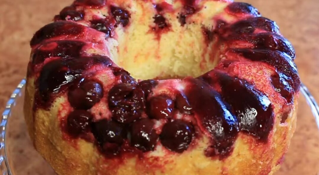 Сегодня мы будем готовить очень вкусный кекс. Готовить это лакомство можно в любое время года, как из свежей, так и из замороженной вишни. Кисло-сладкая ягода придаёт кексу удивительную сочность и прекрасно дополняет нежно рассыпчатое тесто. Для приготовления нам понадобится: К вишне без косточки добавляем сахар, крахмал, перемешиваем и оставляем в сторонке. Так как всё готовится очень быстро нужно сразу включить духовку и разогреть её до температуры 170°. Далее в миску добавляем яйца, сахар, и перемешиваем до растворения сахара. Можно воспользоваться миксером, но венчик тоже с лёгкостью справляется. Добавляем растительное масло, молоко, ванильный сахар, разрыхлитель, муку, и перемешиваем до однородности. Тесто должно получиться вот такой консистенции, без комочков муки. Форму смазываем сливочным маслом. В неё пересыпаем вишню, распределяем равномерно по форме. Поверх вишни выкладываем тесто. Отправляем наш кекс в разогретую духовку до 170°. Наш кекс испёкся в