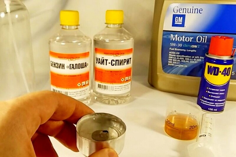 Все перечисленные компоненты можно достаточно легко найти или заменить подходящими аналогами. Уайт-спирит продается практически в любом строительном магазине и дешевле оригинальной вэдэшки. Вместо дорогих летучих фракций нефтепродуктов можно использовать обычный бензин марки «калоша». Он тоже содержит летучие углеводороды.