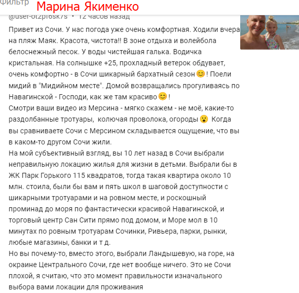 Но давайте по пунктам, я отвечу вам, почему мы уехали из Сочи после 10 лет жизни.