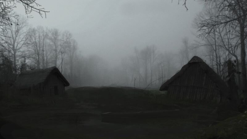 Я снова в какой-то мрачной деревушке. Полумрак и серость царят здесь. Повсюду плотный туман, из-за которого я вижу лишь несколько покосившихся, полуразрушенных, вросших в землю, избушек. Пустые глазницы окон, напоминали черные дыры, так как света не было ни в одном из них. На росших рядом черных деревьях, не было ни одного листочка. Животных и птиц я не видела... Людей тоже... Никого не было... От этого атмосфера вокруг была жуткой. Я заметила, что воздух здесь был плотным, и я ощущала его своим телом... Это как, если опустить руку в жидкий кисель - вот настолько он был плотным. Дышать таким воздухом было очень трудно...