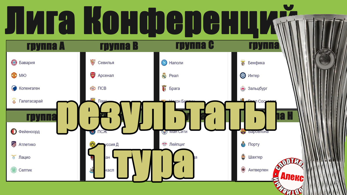 Доброй ночи! Состоялся 1-й тур группового этапа Лиги Конференций сезона 2023/2024. Рассказываю о результатах, расписании, таблицах. . Группа А: Французский Лилль обыграл словенскую Олимпию 2-0. . Слован обидел фарерский Клаксивк 1-2. . Таблица. Лилль и Слован набрали по 3 очка. Клаксвик и Олимпия без очков. Из групп фактически выходят по 2 команды. Расписание. 2-й тур во всех группах состоится 5 октября. Олимпия принимает Слован, Клаксвик – Лилль. . . Ровная Группа В: Маккаби Тель – Авив обыгрывает исландский Брейдаблик 3-2. Клеминт Ольсен из Фарерских островов забил дважды. . Заря в Польше принимала бельгийский Гент и закончила вничью 1-1. . Таблица. У Маккаби – 3 очка. Гент и Заря поделили баллы. Брейдаблик – аутсайдер. . Расписание. Брейдаблик – Заря, Гент – Маккаби. . Группа С: Динамо Загреб разгромило казахстанскую Астану 5-1. Бруно Петкович реализовал 2 пенальти. . Чешская Виктория минимально обыграла косовский клуб Балканы. . Таблица. Динамо и Виктория – в лидерах. Балканы и