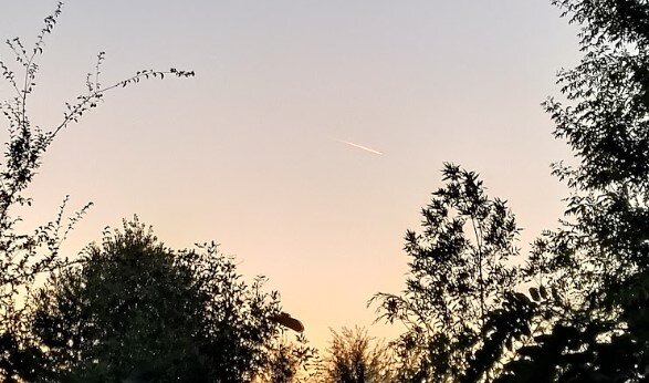 Она подняла голову и увидела в последних лучах дня след от самолета.
