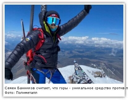 Счастье не за горами, оно в горах. Так считает Семен Банников, слесарь участка электромеханической службы рудника "Дукат". В "Полиметалле" он трудится недавно, с марта этого года, а в свободное время покоряет горные вершины. Семен убежден, что альпинизм дает человеку невероятную моральную разрядку и является уникальным средством против любого стресса. Главное увлечение На Дукате Семен Банников ремонтирует горную технику. Работа требует от специалиста не только профессиональных знаний и навыков, но и физической выносливости. Воспитать в себе нужные качества помогает главное увлечение его жизни — альпинизм. В этом виде спорта он достиг серьезных высот в прямом и переносном смысле. Семен доволен, что попал на работу по специальности и именно в "Полиметалл". Вахтовый график позволяет удобно сочетать работу и хобби. Кроме того, с самого начала трудовой деятельности компания стала для него синонимом стабильности и развития. "Для сотрудников, работающих вахтой, созданы все условия. Комфортное