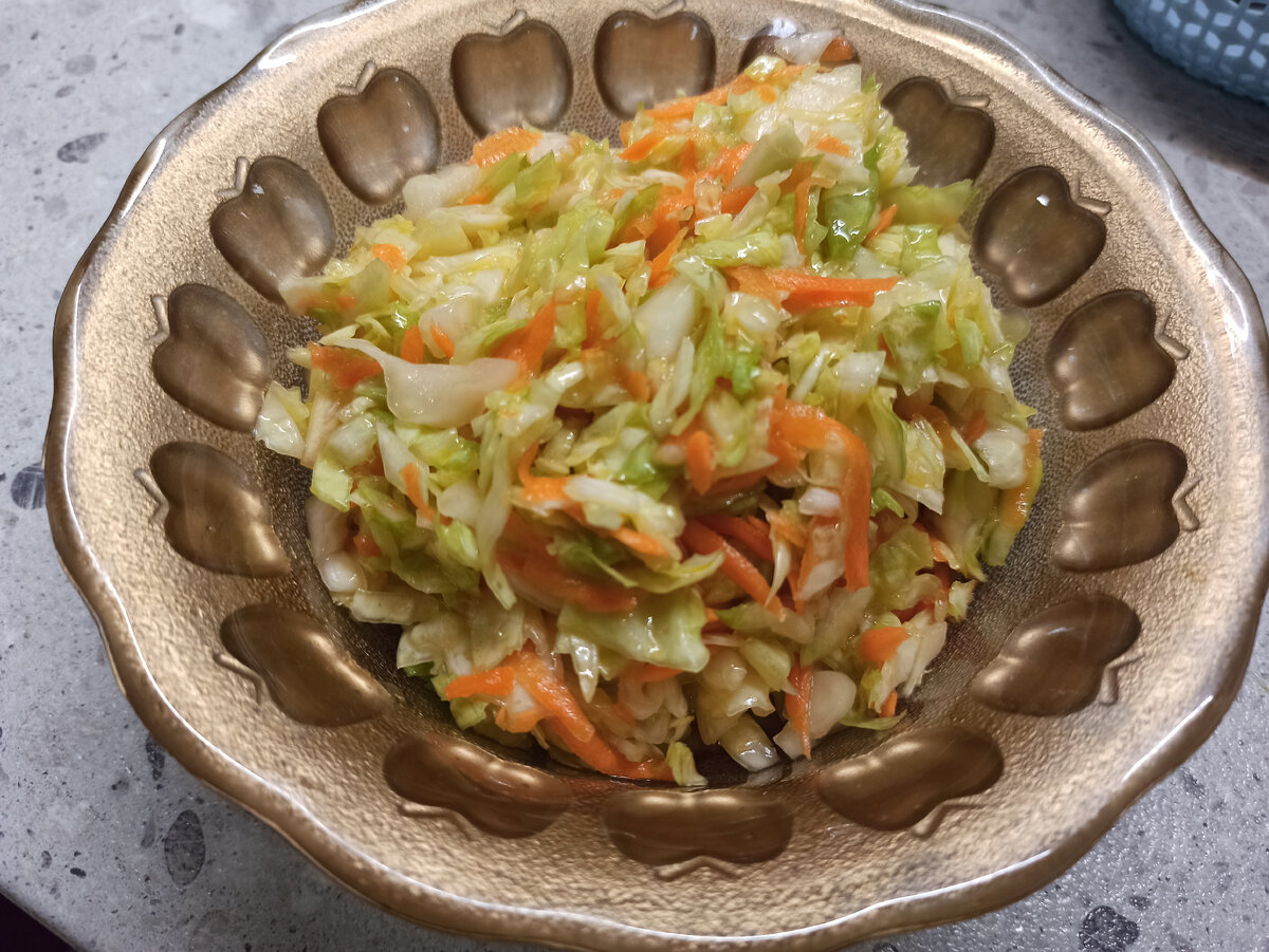 Вкусно и просто 👍 Капуста Морковь Соль, сахар, уксус, растительное масло Капусту нашинковать тонко, добавить к ней морковь натёртую на крупной тёрке, посолить немного и хорошо перемешать, чтобы капуста пустила сок. Добавляем немного уксуса, сахар по вкусу, хорошо перемешиваем и заправляем растительным маслом. Всё готово! Приятного аппетита 😘