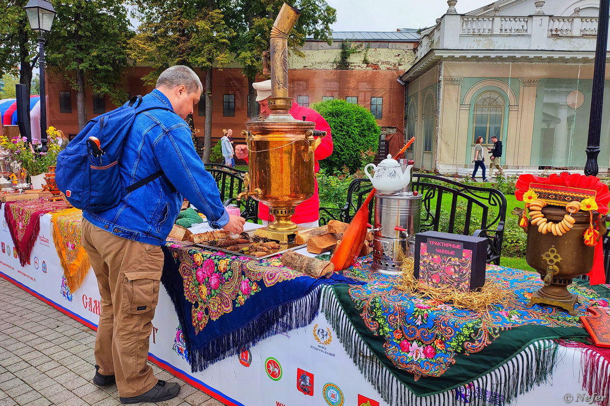 Увидела анонс в интернете, по названию не очень ясно, что за мероприятие, позиционируется как фестиваль гостеприимства. В программе выступления музыкальных коллективов из России, Татарстана, Калмыкии, Удмуртии, Марий Эл, Дагестана, Таджикистана, Армении, Молдавии, народов крайнего Севера и многих других. По описанию красочный праздник. Место проведения - Сад Эрмитаж. Вот мои фотографии, видео в конце. У главного входа наливают чай из самовара и раздают печеньки. Это сразу располагает, приятно, что так встречают. Дальше колбасня для детей, эдакие качели. Вообще, идея хорошая, показать разнообразие обрядов, обычаев и ремесел. Правда, в реальности все оказалось скромнее. Не догуляв до главной сцены, сразу попала на маленькую площадку, где выступали фольклорные коллективы. Музыкальные и танцевальные ансамбли, соло-исполнители. Пели и танцевали душевно, но примерно уровня регионального дворца культуры. Пишу без негативной окраски, потому что это возможность познакомиться с жизнью маленьких