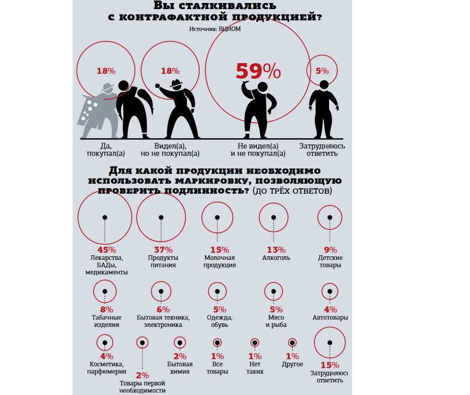 Похоже, обязательная маркировка, которую вводят для всё новых и новых групп товаров, действительно помогает сократить объём контрафакта на потребительском рынке. По крайней мере с 2020 года (когда она только начала внедряться) доля людей, которые видели или даже покупали какую–либо поддельную продукцию, сократилась с 43 до 36%. Об этом говорится в опубликованном опросе ВЦИОМ. Параллельно с этим группа тех, кто никогда не видел (ну или думает, что не видел) контрафакт на прилавке, выросла с 50 до 59%. Особое внимание авторы опроса уделили отношению к контрафактному алкоголю. Хотя в народный топ–3 групп товаров, которые обязательно нужно маркировать для проверки подлинности, горячительные напитки не попали, заняв четвёртое место (13%). Качество лекарств (45%), продуктов питания (37%) и молока (15%) волнует граждан куда сильнее. Иллюзий относительно качества спиртного на полках магазинов россияне, судя по всему, не строят. 19% уверенно ответили, что купить нелегальный алкоголь сейчас "оче