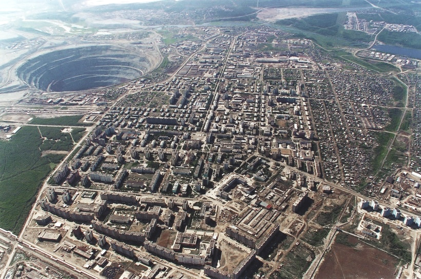 1. Населенных пунктов с названием Мирный в России около сотни. Но самый известный из них — город с населением 34 тысячи человек, расположенный на западе Якутии. Это место носит звание «алмазная столица России»; 2. Самая уникальная достопримечательность Мирного — огромная воронка алмазного карьера «Мир». Она находится в черте города в километре от его центра. Это гигантская дыра в земле диаметром 1,4 километра и глубиной 735 метров. Ныне карьер законсервирован и находится под охраной. Но за время активной работы (1957–2001 гг.) из него добыли алмазов на 17 миллиардов долларов США и вывезли около 350 миллионов кубометров породы; 3. Своим существованием город обязан открытию в 1955 году кимберлитовой трубки, которую геологи назвали «Мир». Вблизи месторождения возник палаточный городок, который превратился сначала в рабочий поселок, а в 1959 году получил статус города; 4. Особенность Мирного в том, что он рос и развивался без градостроительного плана, просто стихийно строясь рядом с карьер
