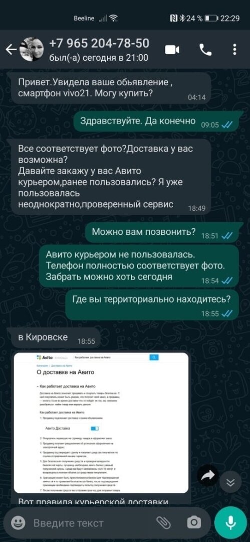 1. Общайтесь только на платформе Авито. Это позволит уменьшить риск попасть на уловки мошенников. Если Вы замечаете что-то подозрительное, обязательно сообщите об этом нашей службе поддержки.