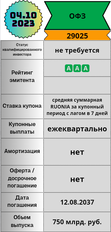 🙀 Доброе утро, друзья! Без утреннего поста таки не обойдётся, но буду очень краток, карусель дел вращает по-взрослому :) 1⃣ Бумага, которая сегодня выходит на рынок, не нуждается в особом представлении. Это любимая большинством игроков рынка ОФЗ - пожалуй, самая надёжная бумага для всех, кто верит в устойчивость страны (а что ещё остаётся!). Очень давно не было новых выпусков, час настал. Да еще и, в соответствии с современными трендами, новый выпуск обладает переменным купоном. Даже если вы являетесь отъявленным спекулянтов, задумайтесь - может быть именно сегодня настал тот момент, когда стоит добавить надёжности на процентик своему портфелю? :) 🕞 Торги, надо полагать, начнутся ранее, чем по мусору - в голове ориентир 15-16 часов. 🕯 ОФЗ 📑 Выпуск: 29025 🔠 Тикер: $RU000A106Z61 🤘 Отличного дня, дорогие подписчики, до вечера! #Облигации #новости #новые_размещения