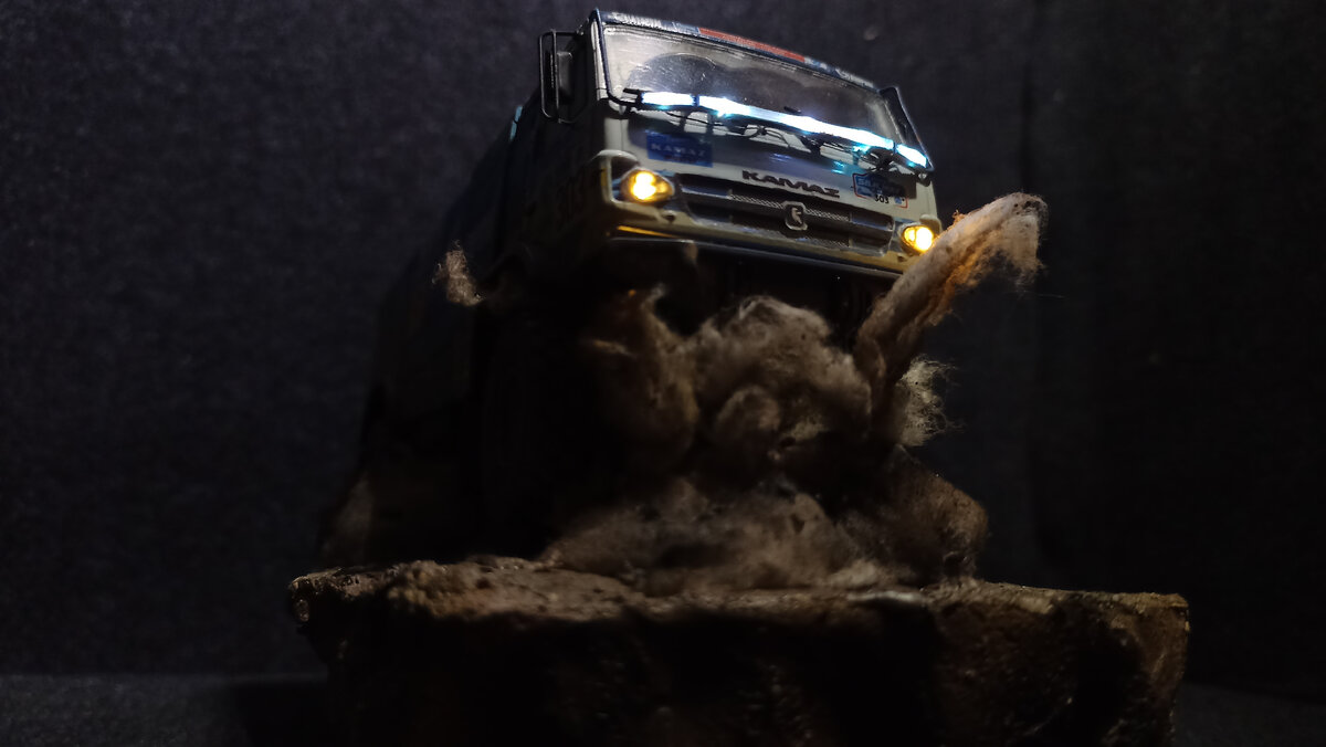 Всем привет✋👋 Решил соорудить подставку для КамАЗа. Задумка такая что КамАЗ на скорости немного сбивает земляной уступ и тем самым подпрыгивает и куски земли различаются в разные стороны. Судите сами получилось или нет. На мой взгляд пыли на хватает лёгкости или воздушности. Что-то не получается пока у меня пыль. Всем 👋 подписывайтесь и ставьте 👍