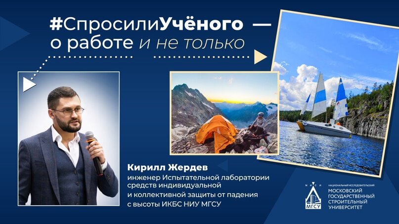 🗣 На вопросы о своём исследовании, посвящённом методике комплексных испытаний систем обеспечения безопасности при производстве работ на высоте, нам ответил инженер Испытательной лаборатории средств индивидуальной и коллективной защиты от падения с высоты ИКБС НИУ МГСУ Кирилл Жердев 👇