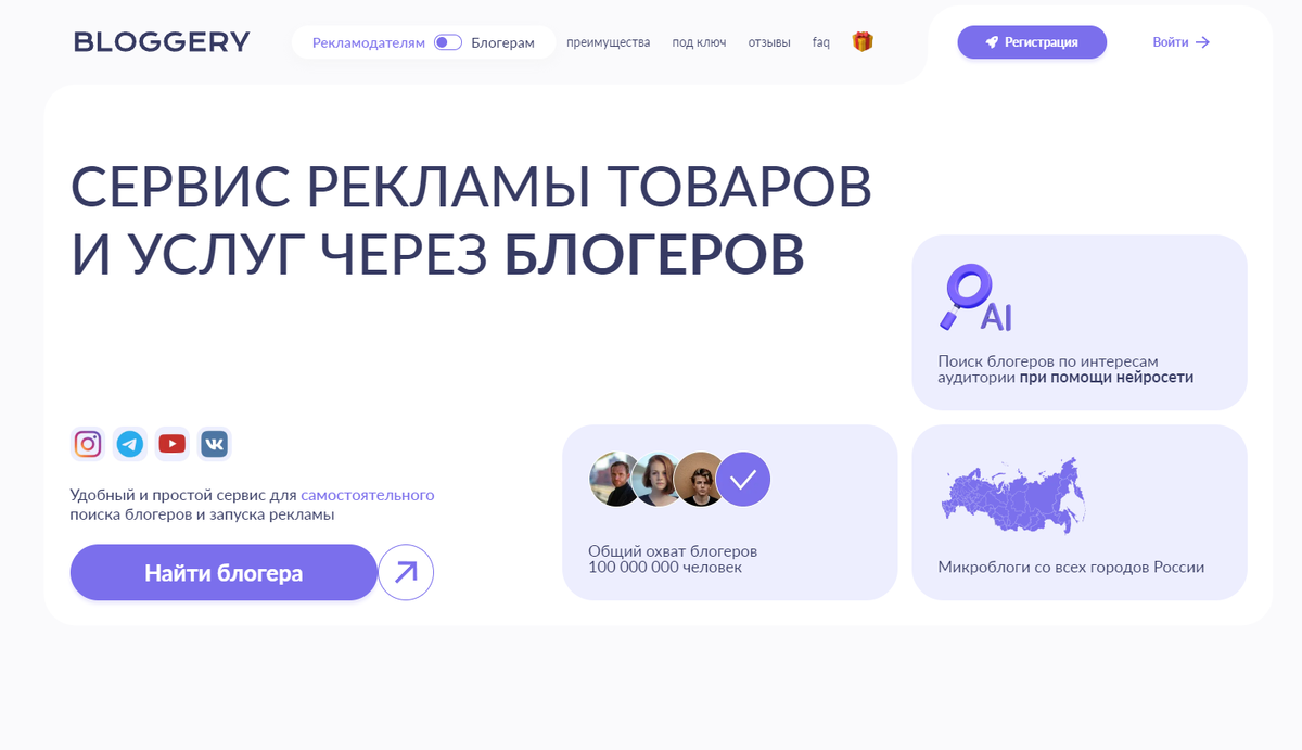 Bloggery.io - удобный и простой сервис для самостоятельного поиска блогеров и запуска рекламы.