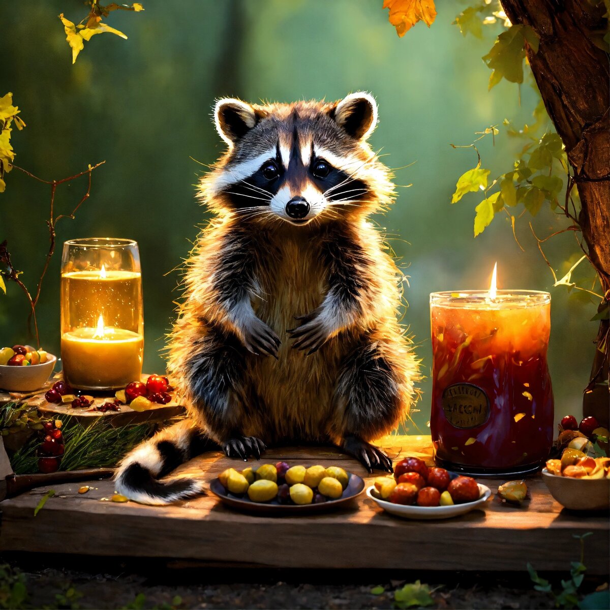 Когда-то в тихом пригородном районе жил умный и озорной енот по имени Рокки. Рокки не был обычным енотом; он был известен во всем районе своим авантюрным духом и способностью вникать практически во все. Логово Рокки расположилось в уютном уголке квартала, возле небольшого парка с живописным прудом. У него была семья енотов, которые делили с ним его логово: его подруга Рози и трое их игривых котят Рикки, Ронни и Руби. Одним солнечным утром, когда жители района начинали свой день, любопытство Рокки привело его к соблазнительному запаху, доносившемуся из одного из домов. Это был аромат свежеиспеченных черничных кексов, доносившийся из кухни дома миссис Дженкинс, пожилой женщины, известной своей вкусной выпечкой. Не в силах устоять перед искушением, Рокки решил продолжить расследование. Он украдкой залез на дерево рядом с кухонным окном миссис Дженкинс и заглянул внутрь. Там, на подоконнике, стоял поднос с соблазнительными кексами, охлаждавшимися на утреннем ветерке. Ловкие лапы