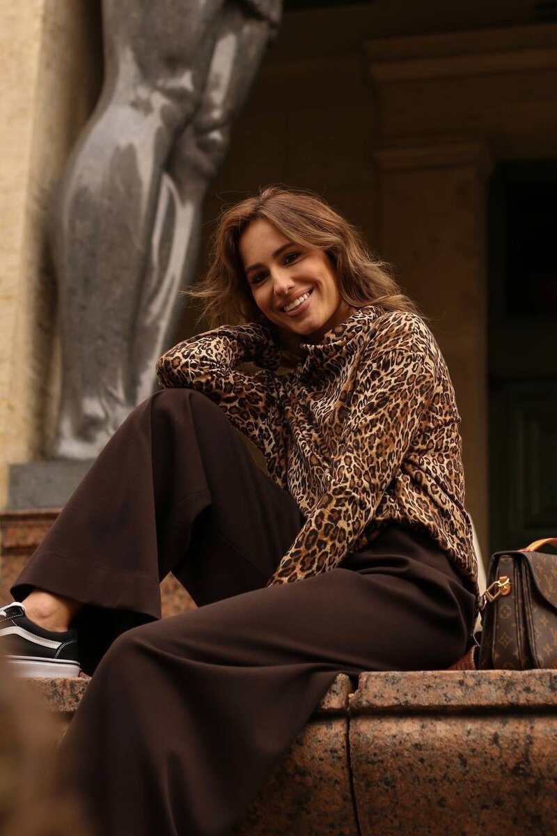 Ритм города. Ткани и модели, силуэты и детали, цвета и фактуры. Новая коллекция готовых изделий от «ТИССУРЫ» — это модный ритм большого города, это возможность оставаться собой и жить в ритме городской моды. Водолазка из шерстяного трикотажа с леопардовым принтом дополнит и