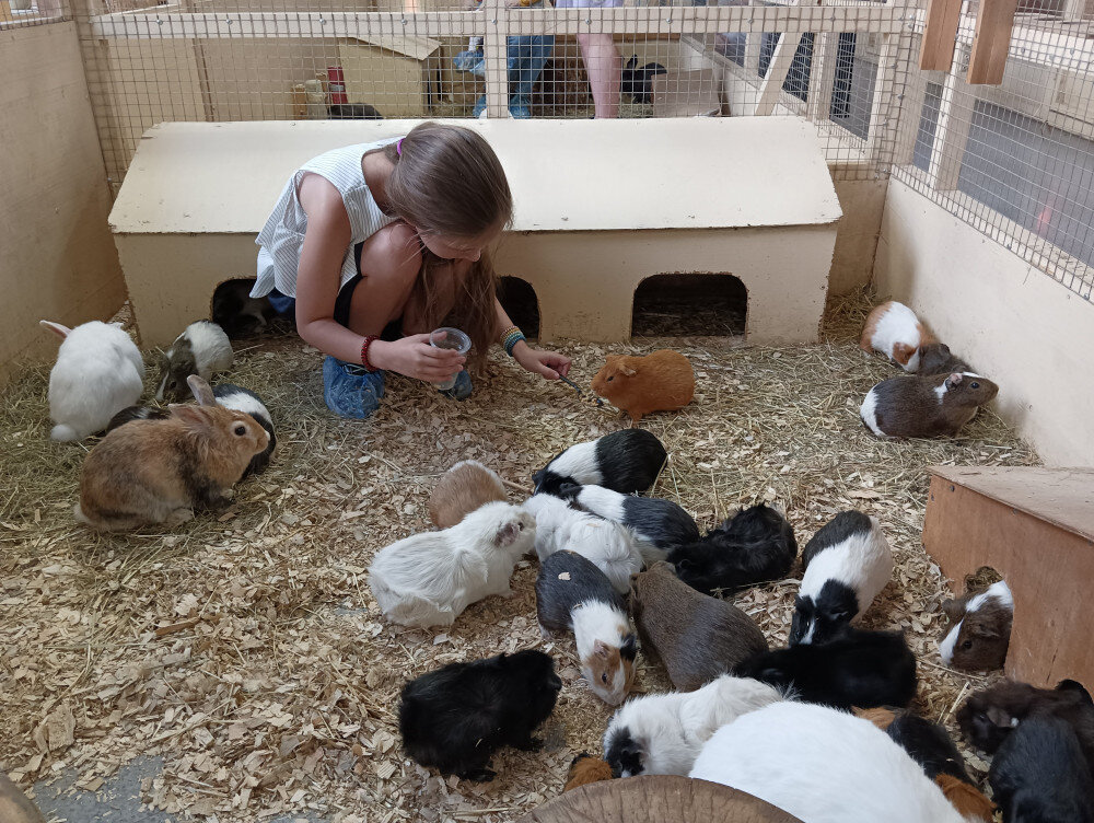 В вольере со свиньями и кроликами меня чуть не затоптали :)