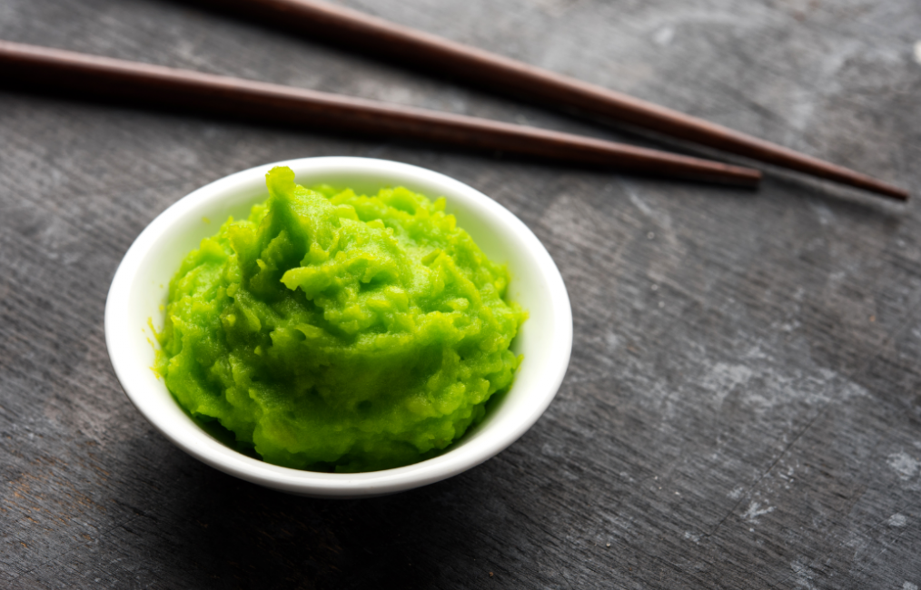 Васаби – традиционный соус японской кухни. Для его приготовления в Японии используют корень одноимённого растения, который ещё называют эвтрема или японский хрен. Растение довольно капризное – требуется определённая температура и влажность воздуха. Корень васаби в свежем виде не подлежит длительной транспортировке, в России найти его практически нереально. Острый васаби с рисовым уксусом Ингредиенты: Приготовление: Насыпь в посуду подходящего размера порошок васаби и сахар. Развести водой, быстро помешивая, чтобы не было комочков. После этого добавить рисовый уксус и снова хорошо перемешать. Переложи приправу в рюмку и переверни её на тарелку с основным блюдом или в отдельное маленькое блюдце. Спустя 10 минут подай к столу. Васаби с хреном и лимонным соком Ингредиенты: