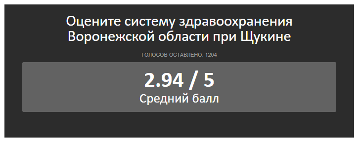 В материале, где говорится об отставке главы департамента, «Блокнот Воронеж» попросил читателей поставить оценку здравоохранению области в период Щукина. И они поставили. Средний балл не дотянул и до трех: