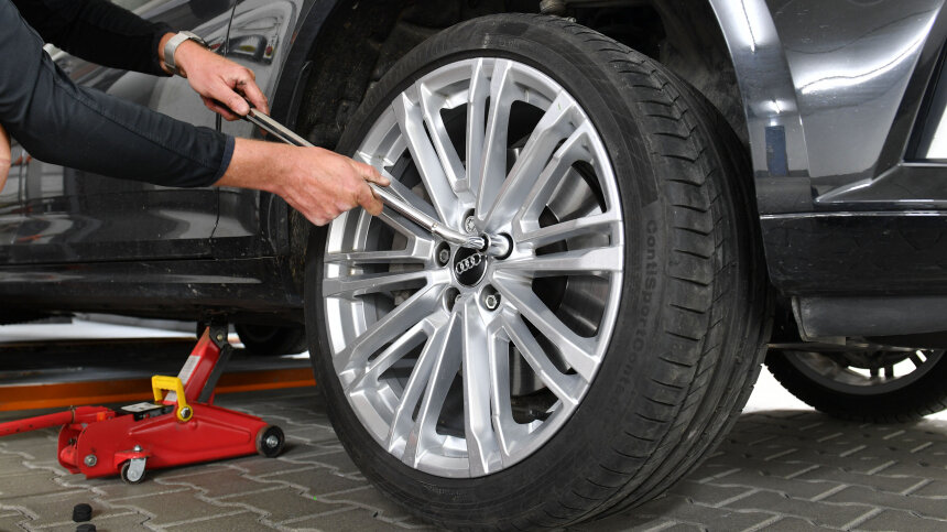 «Места под колесом должно быть достаточно для того, чтобы нам было удобно работать. Не должно быть, что колесо впритык с поверхностью. Иначе в момент затяжки либо мы будем повреждать автомобиль своими движениями, либо он будет подвижен, что небезопасно», — объяснил специалист.