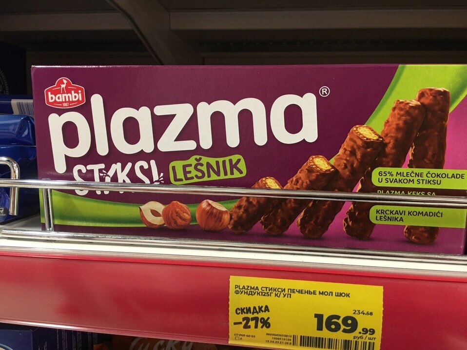 В тюменские магазины завезли сербскую «Плазму». Печенье продают в кондитерских отделах федеральной сети «Магнит», пока только в виде глазированных палочек. Сербская Plazma появилась в продаже вскоре после того, как тюменские производители аналогичного печенья отказались от бренда «Плазма». В этом году компания "БКК и Ко" отмечает 30-летие. К юбилею было решено переименовать легендарное печенье "Плазма". Теперь оно носит название "Тюменочка". Ребрендинг произошел еще весной, он связан с возросшим туристическим потоком. Интерес гостей города к печенью с названием "Тюменочка" гораздо выше, — рассказали в Торгово-промышленной палате Тюменской области. Как писал DK.RU, «Плазму» БКK выпускал с 1993 г., производственную линию в Тюмени тогда смонтировали по югославской технологии, изначально ее позиционировали как продукт детского питания. В Сербии Plazma до сих пор пользуется популярностью, в магазинах этой страны печенье продают в самых разных форматах, в том числе, в виде крошки (так же «Пл