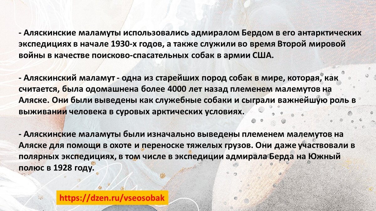 В мире много разных пород собак. На моем канале я буду рассказывать о каждой из них по алфавиту. Мои статьи будут полезны для тех, кто хочет узнать о конкретной породе или собирается завести собаку. Вы узнаете о их особенностях, истории, уникальных чертах характера и о том, как правильно заботиться о них. Если мыслить логически, можно найти верного спутника, который будет соответствовать вашему характеру и образу жизни на протяжении многих лет. Аляскинский маламут - порода собак, которая восхищает своей выносливостью и преданностью. Они родом из Арктики и изначально использовались для перевозки саней и охоты. Однако, сегодня они стали популярными среди семей благодаря своему любящему и ласковому нраву. Давайте познакомимся поближе с этой величественной породой, узнаем о ее особенностях и правильном уходе за ней. Физические характеристики Аляскинский маламут - это крупная и мускулистая порода собак. Самцы весят от 75 до 85 кг, а самки - от 65 до 75 кг. Их густая двойная шерсть позволяет