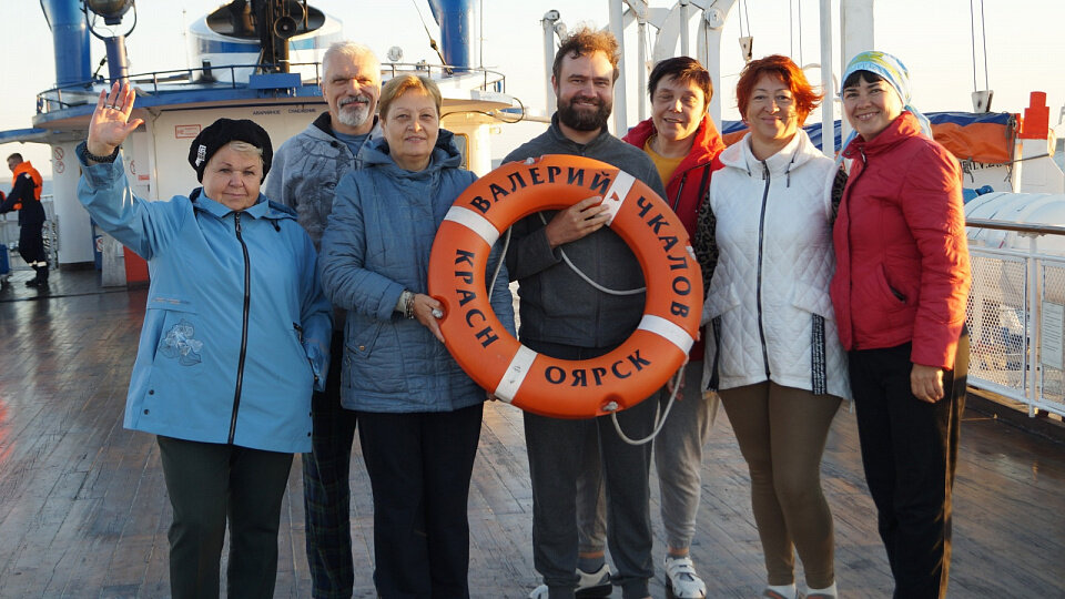 Теплоход «Валерий Чкалов» построенный в далёком 1953 году, отметил свой 70-летний юбилей. Говорят, что на своём маршруте он работает последний сезон. Путь путешественников на нём проходил вниз по течению от Красноярска до порта Дудинка.