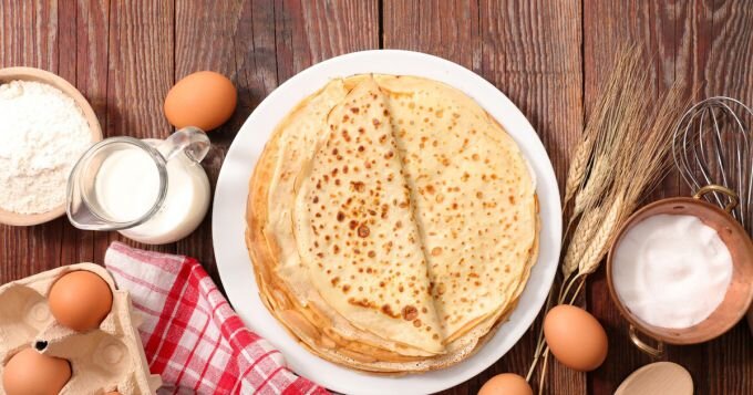- Чтобы сделать тонкий блин одинаковой толщины по всему периметру, следует немного наклонить сковороду при наливании в нее теста и слегка вращать ее, пока тесто еще не схватилось.