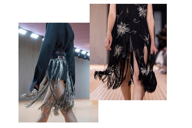 Когда-то бахрома казалась микротрендом, который не задержится на модной арене больше чем на один сезон. Однако этот декор продолжает набирать обороты и уже стал одним из главных трендов на прошедших Неделях моды. Например, Prada предлагают носить самую разную бахрому: от акцентных вариантов, закрепленных поверх микрошорт до более сдержанной тесьмы, свисающей с подолов платьев. Gucci украсили тонкой сверкающей бахромой пальто и юбки миди, а Bottega Veneta показали необычные варианты костюмов с кожаной бахромой и юбок А-силуэта с шерстяным декором по периметру подола. Но если бахрома на одежде кажется для вас пока слишком смелым решением, присмотритесь к аксессуарам: сумкам, шарфам или обуви, которые тоже часто появлялись на модной арене. Впрочем, необязательно ждать весны, чтобы попробовать этот тренд: внедряйте его в свой гардероб уже сейчас.